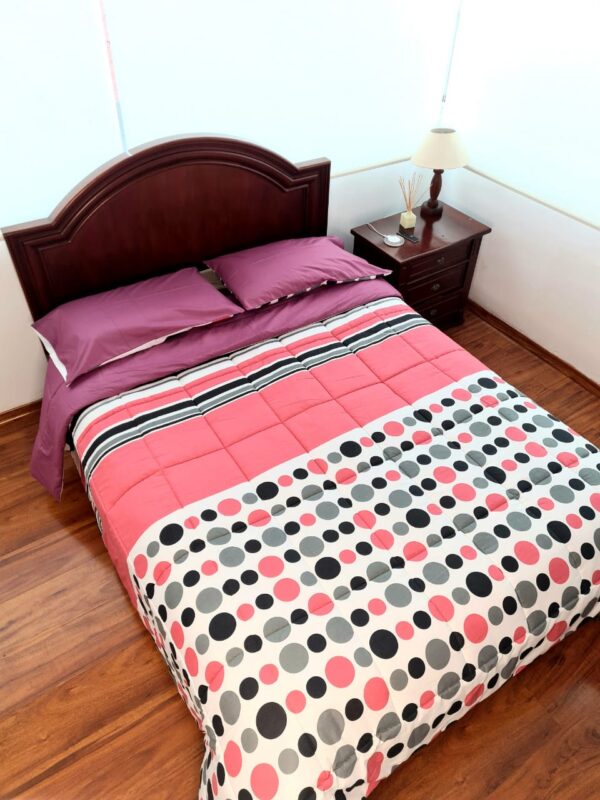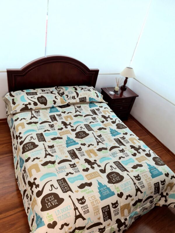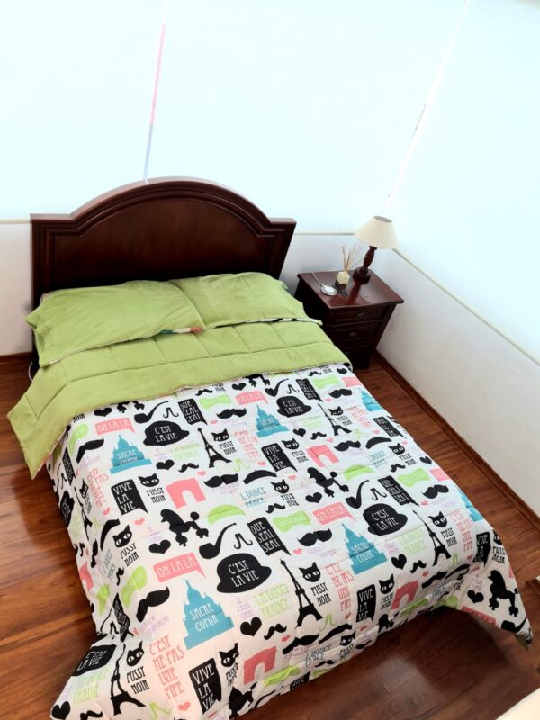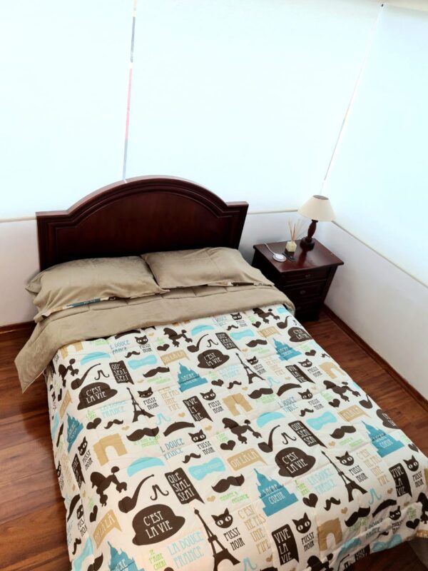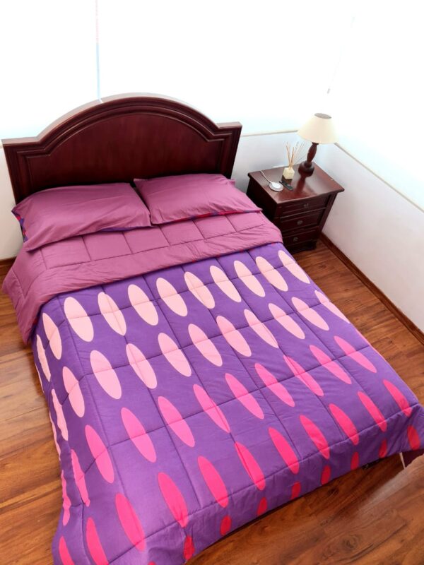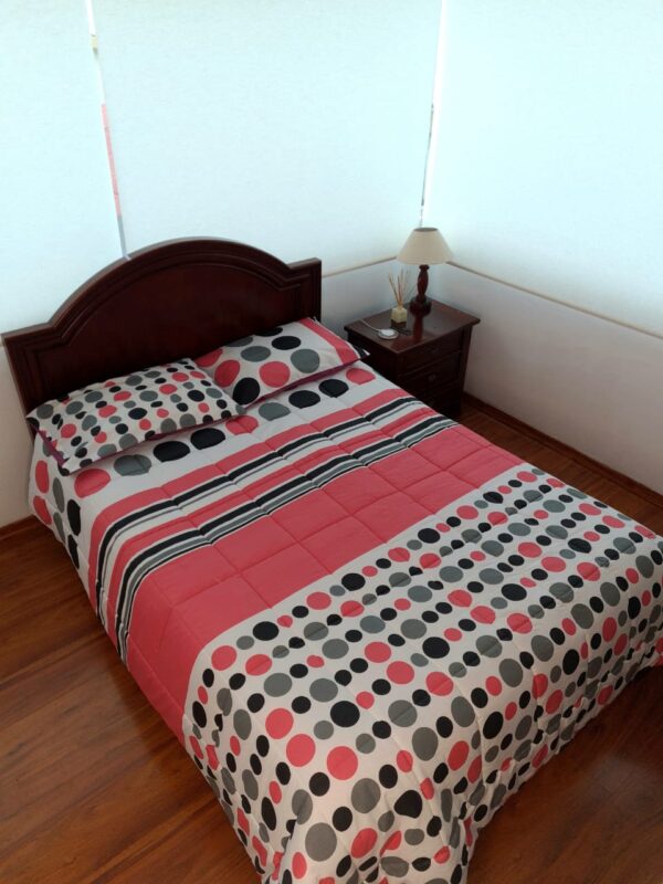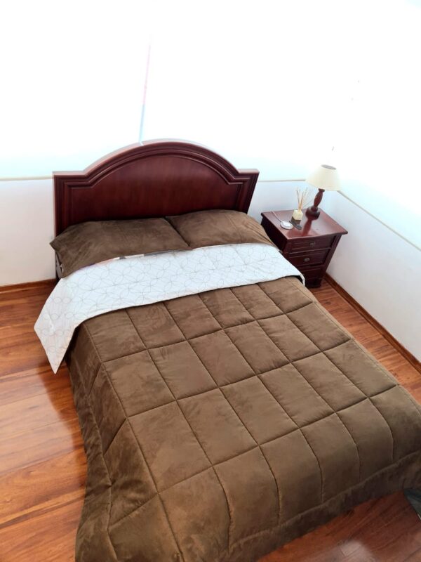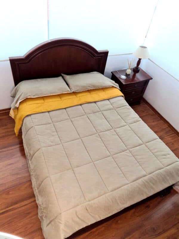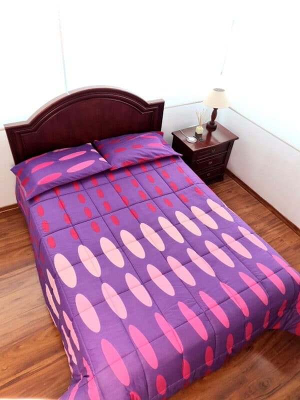 Diseños modernos y reversibles, en tela tipo gamuza, relleno de plumón, confeccionados con nylon.